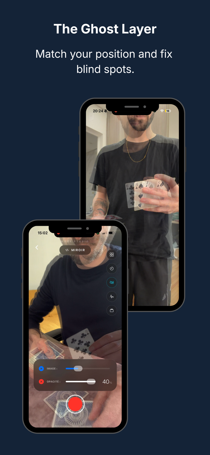 Perfect for close-up and sleight of hand. Set your interval timer, perform your move naturally, and put your phone down. The app automatically records, replays for immediate feedback, and restarts the next take hands-free.