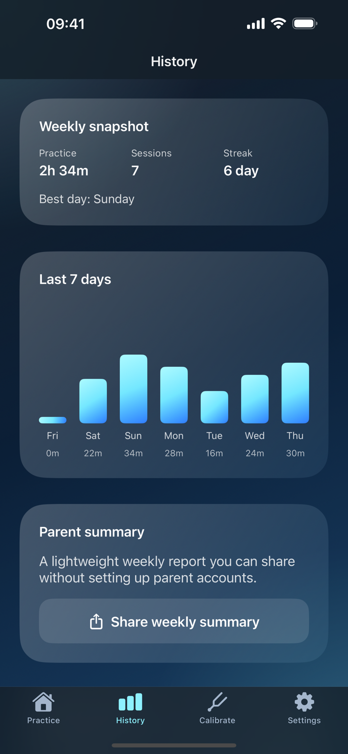 使用 TrackMyPlay 改变您的音乐练习方式 —— 这是一款智能练习助手,利用先进的音频识别技术自动跟踪您的练习。