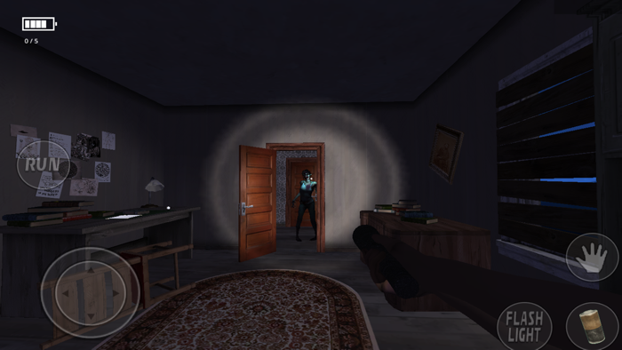在这座闹鬼的庄园里,你扮演一名记者。收集钥匙和日记以逃脱。有一个精灵,如果她抓住你就会杀了你。这里发生了许多超自然和可怕的事件。一个恶魔萦绕着这座庄园。探索整个庄园并在为时已晚之前逃离。一本日记揭示,父亲阅读恶魔书籍并带来了灵媒大卫,大卫在各处都放置了符咒。母亲的行为很奇怪,她带着一张丑陋的脸看着主角睡觉,而且吃得喝得都不多。小心谨慎,设法逃离这座庄园。