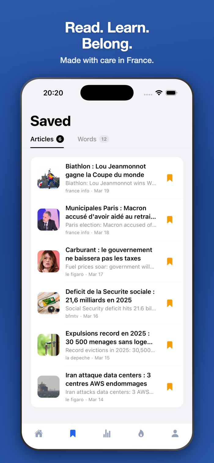 Better French takes real news from 40+ trusted French sources, summarizes it clearly, and lets you read in French or English. Tap any word for an instant translation with context. Then test what you learned with interactive games. It's not a textbook. It's not a news feed. It's both, and it works.