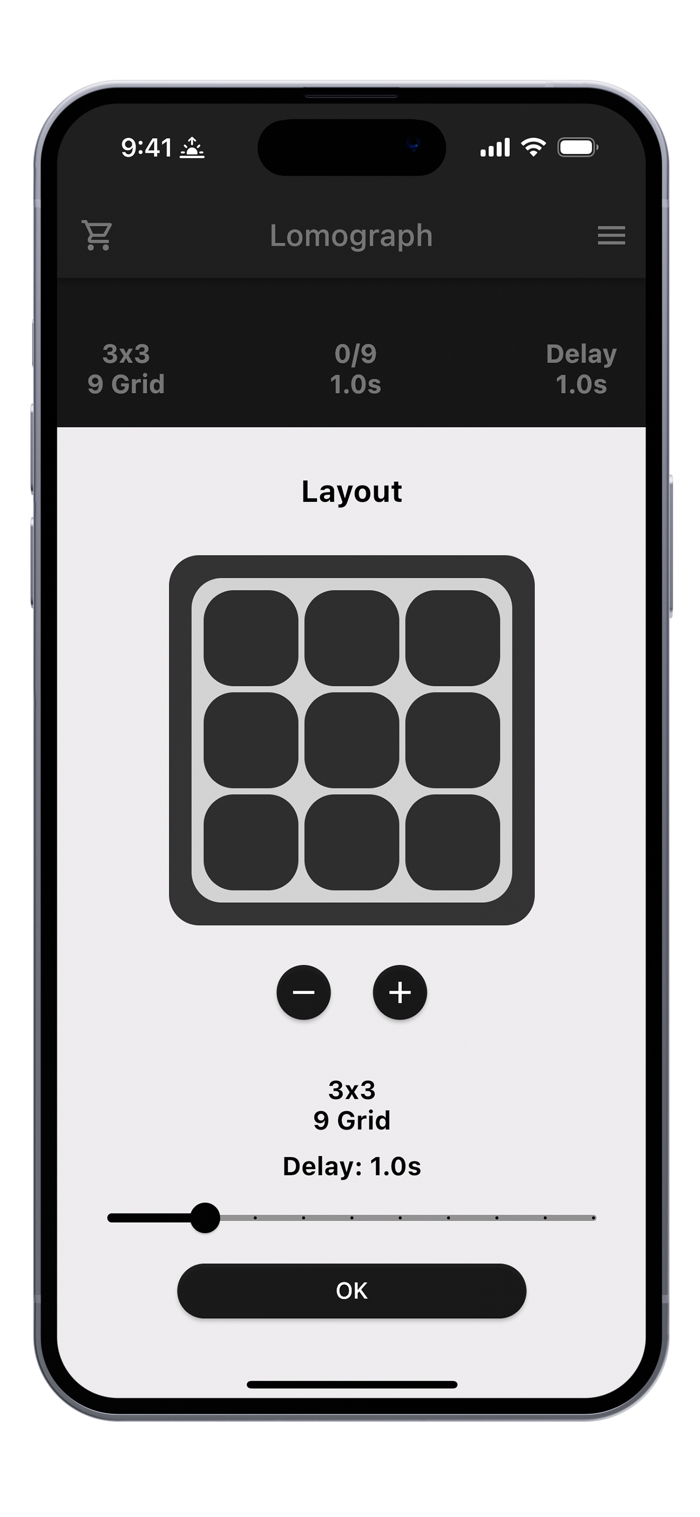 - select the delay between pictures (0.5 to 5 sec)