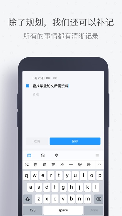 一个十分清新的时间管理工具,以时间点为主导去管理待办事项,每天都有数以百计的事情,我们要想将事情都管理得有条理,就应该要将事情都记住并在某个时间前完成,这个 APP 会让你思考今日规划的任务完成后有什么收获,而不仅仅是完成就行了的,这点挺不错的。