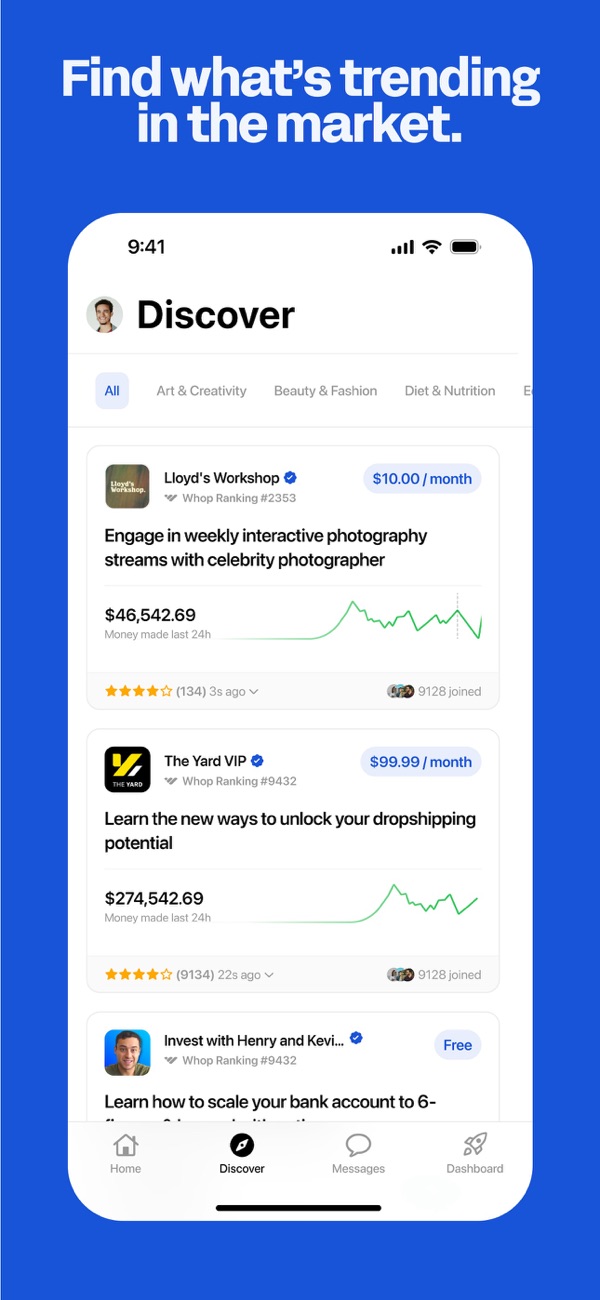Whop是您的全功能互联网家园,一站式构建与售卖数字产品、管理社群、发展创作者业务。无需多平台工具切换,即刻启动销售,轻松打造并维护活跃社群,让目标买家轻松发现您的产品。加入成千上万成功创作者行列,享受更少的麻烦与更多的收益,社群蓬勃发展,业务自主增长,可靠及时支付。实时分析、一键产品设置及内置社群工具,助您成功!