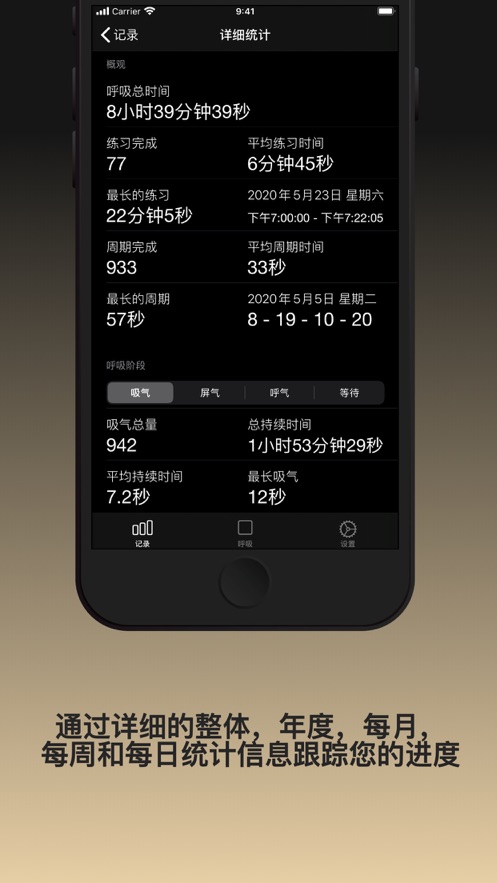 - 内置节拍器帮助您计算呼吸过程中的每一秒钟