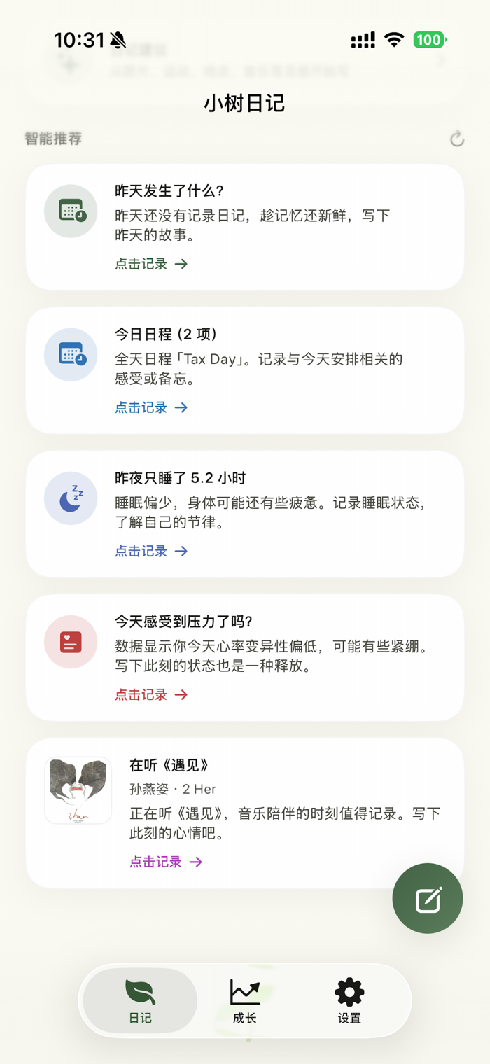 • 健康情境:可结合睡眠、运动、正念等数据,减少手抄、让日记更贴近真实一天。