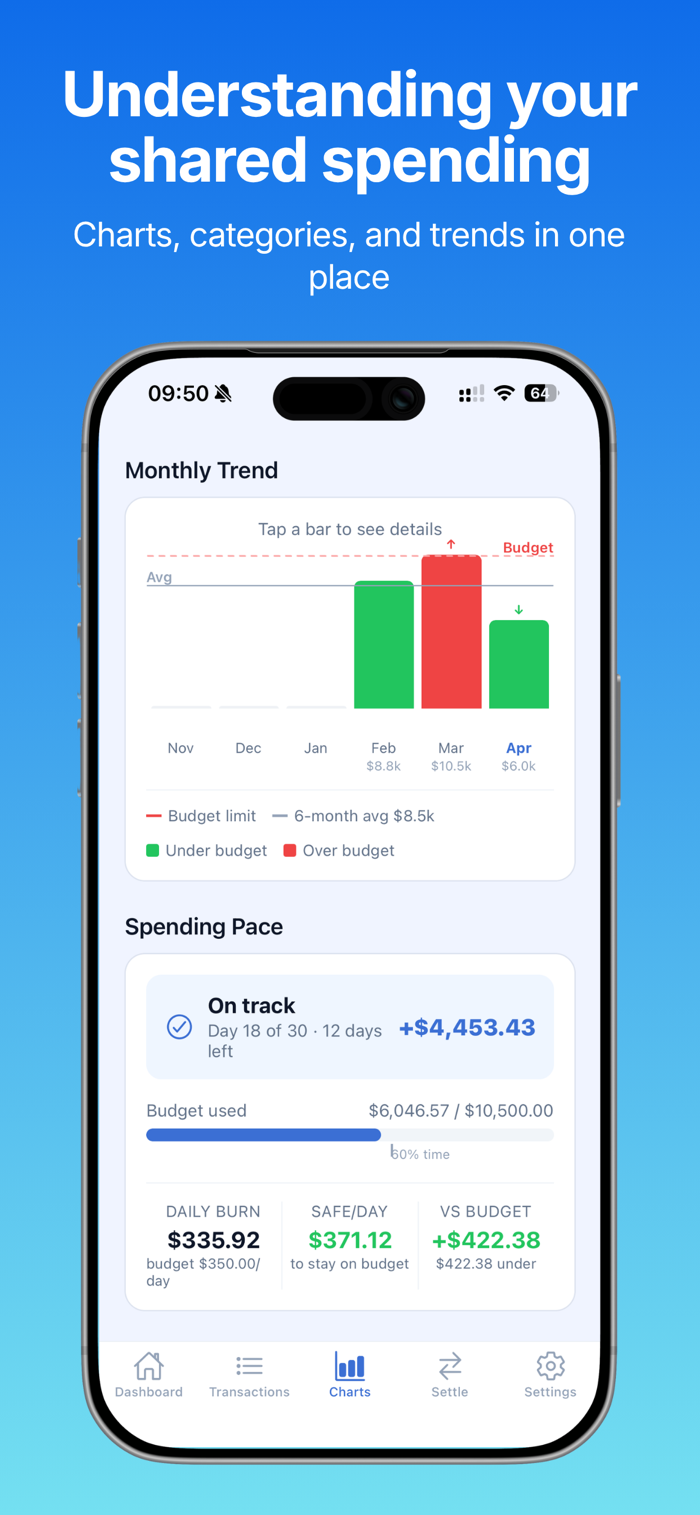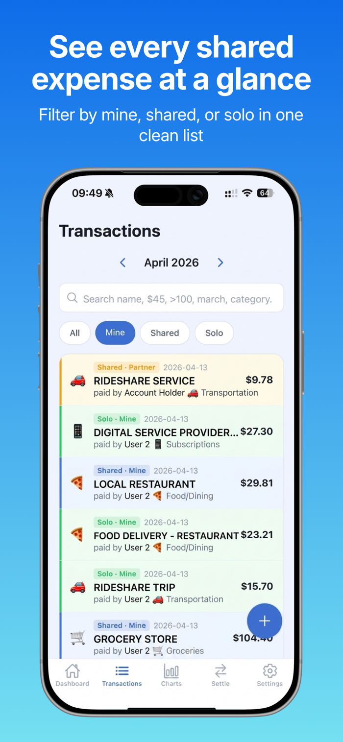 Flowt让与伴侣或室友追踪、分摊和结算共享费用轻松无比,告别电子表格、尴尬金钱对话和遗忘的借条。能一起追踪,秒速添加费用,可50/50或自定义分摊,一键结算且余额自动重置;支持扫描收据,AI自动读取并填充信息;有月度消费图表、共享与个人费用明细、类别预算限制及智能搜索交易历史等功能,专为两人打造。