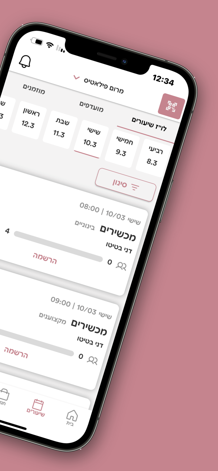 כל מה שצריך לרישום מראש לשעורים השונים שלנו, שיריון מקום בשעורים עמוסים, סימון השעורים המועדפים, הצגת השעורים של המדריך המועדף עליך.