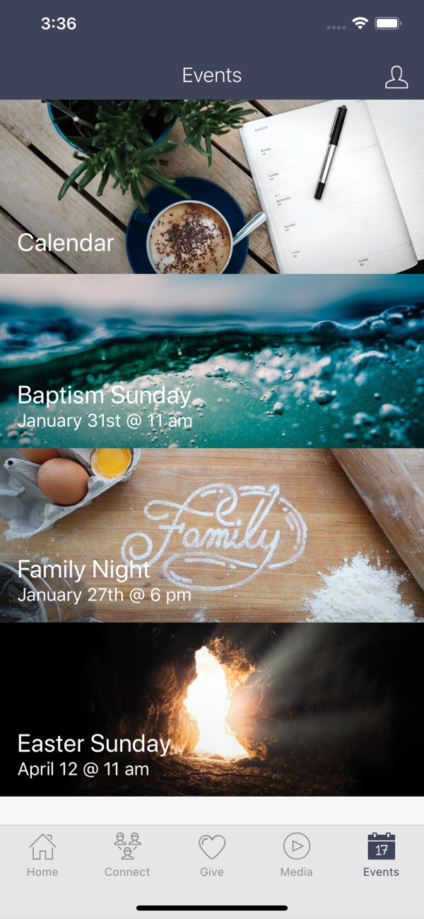 峡谷泉基督教应用程序可连接用户,用户能在此查看即将发生的事件、进行捐赠、阅读圣经等。