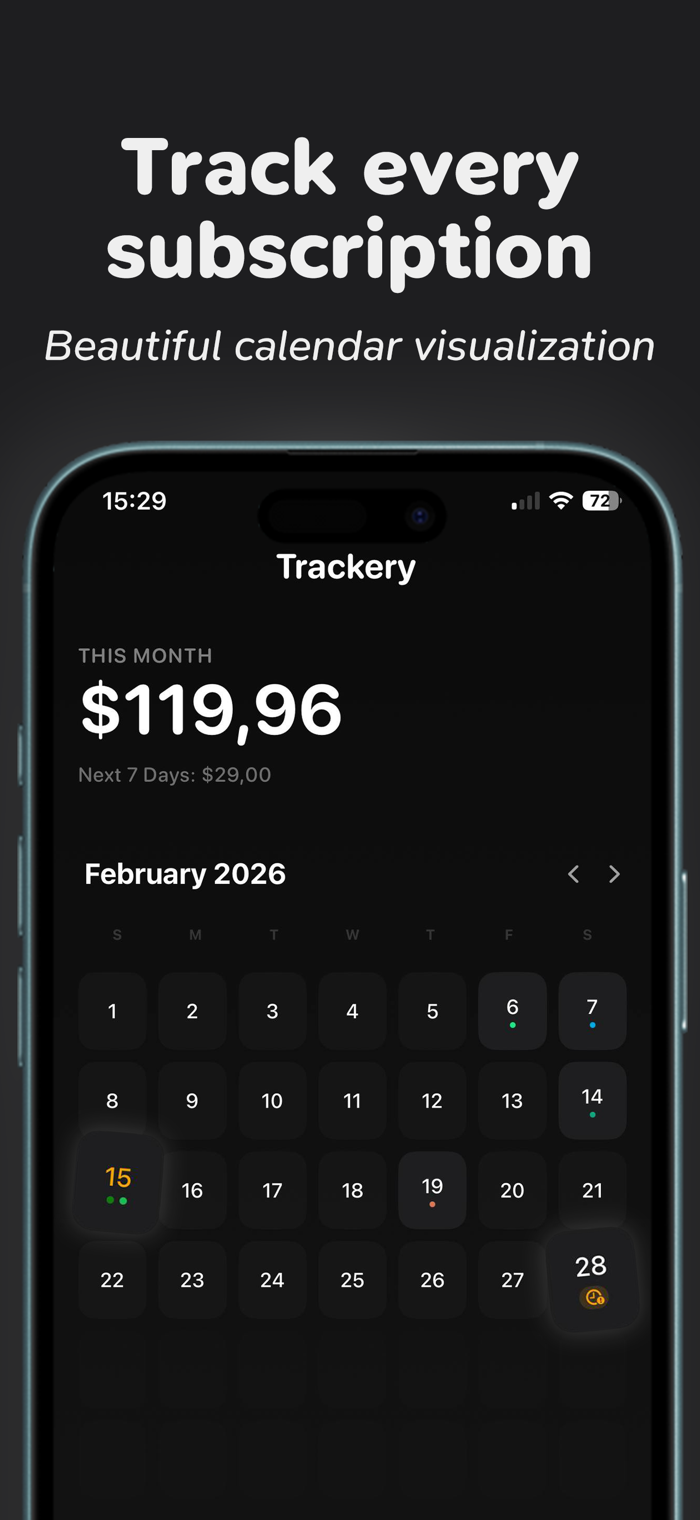 Trackery是一款iOS应用,能助您掌控数字生活,组织所有定期费用,避免错过续费或试用到期。其智能功能包括自动分类,如按视频、音乐、财务等分类;提供6个月历史分析洞察消费习惯;试用到期前有特定提醒;支持家庭共享追踪及分摊费用;可管理任何货币的订阅并实时换算。它是注重隐私、财务清晰的美观工具,助您节省开支,避免为不用的付费。