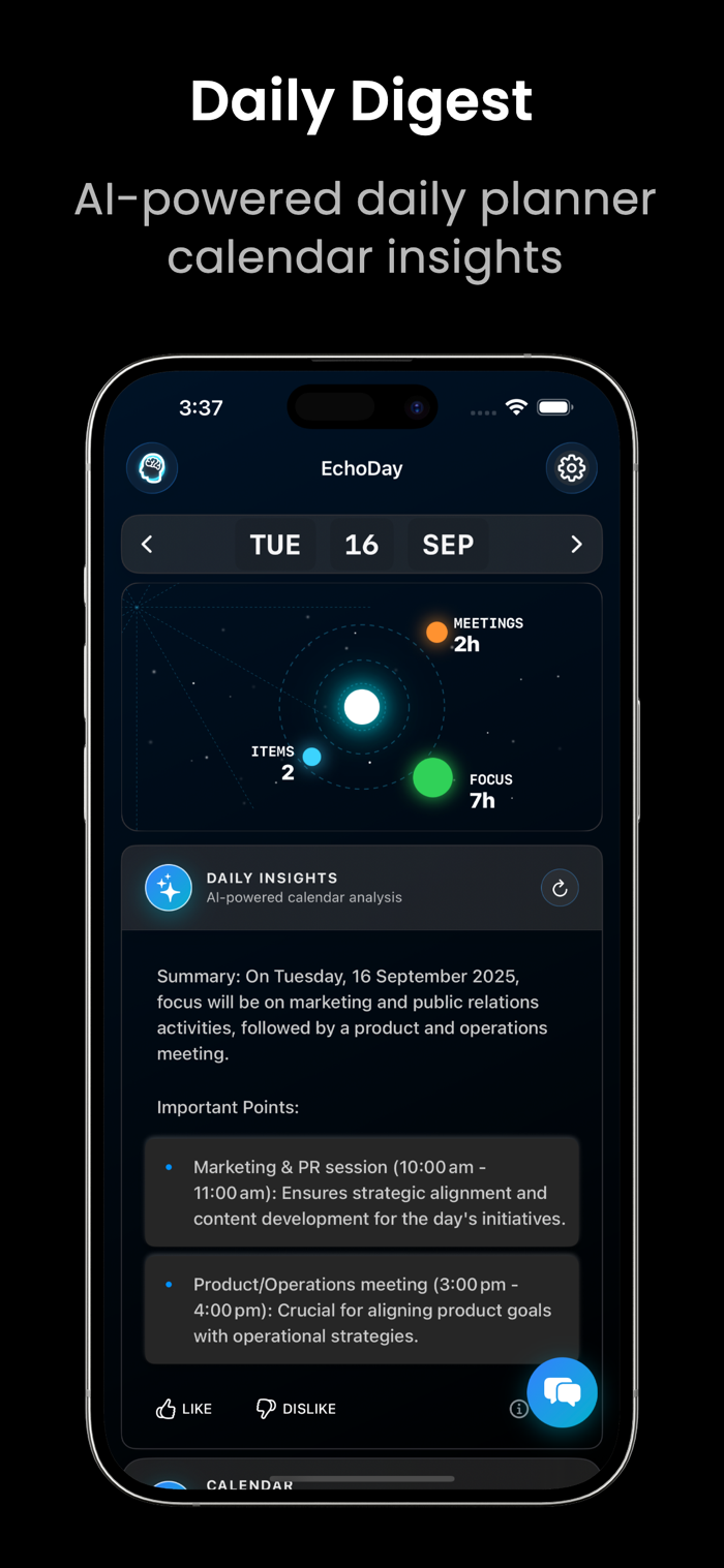EchoDay是一款融合苹果智能与本地AI的新一代日常计划和日历助手,能改变你安排、理解和执行日程的方式,且信息全在本地设备,安全私密。它与传统日历应用不同,可无缝融入苹果生态,利用设备上的AI进行智能总结、提供主动见解和自然语言交互,通过苹果智能与本地AI助力规划未来,是了解你在iPhone、iPad和Mac上日程安排的个人智能日历助手。