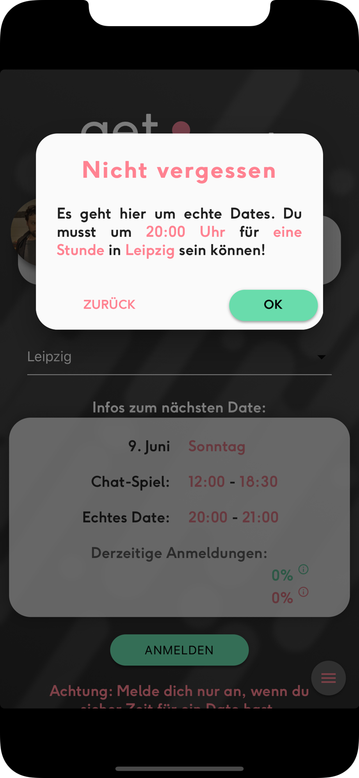 get:real不同于其他约会应用,专注为真实的人提供真实约会。无需长时间浏览资料、推拉匹配或反复聊天,它会直接促成今晚的真实约会。注册后很可能接到电话,参与前需明确固定约会时间、仅用自拍作头像、无在线聊天、有限选择、规定约会地点、保持可靠与自信。参与时会与四位潜在对象同时互动,通过简短问答游戏找到心仪约会对象。