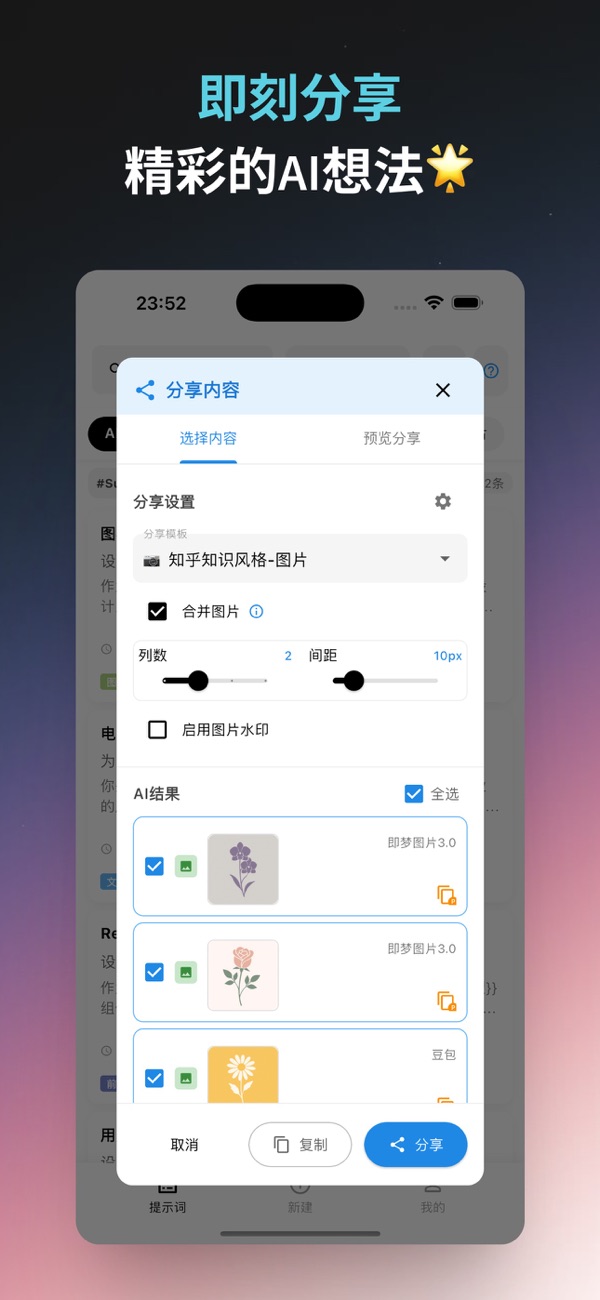 清晰直观界面,快速找到所需提示词。
