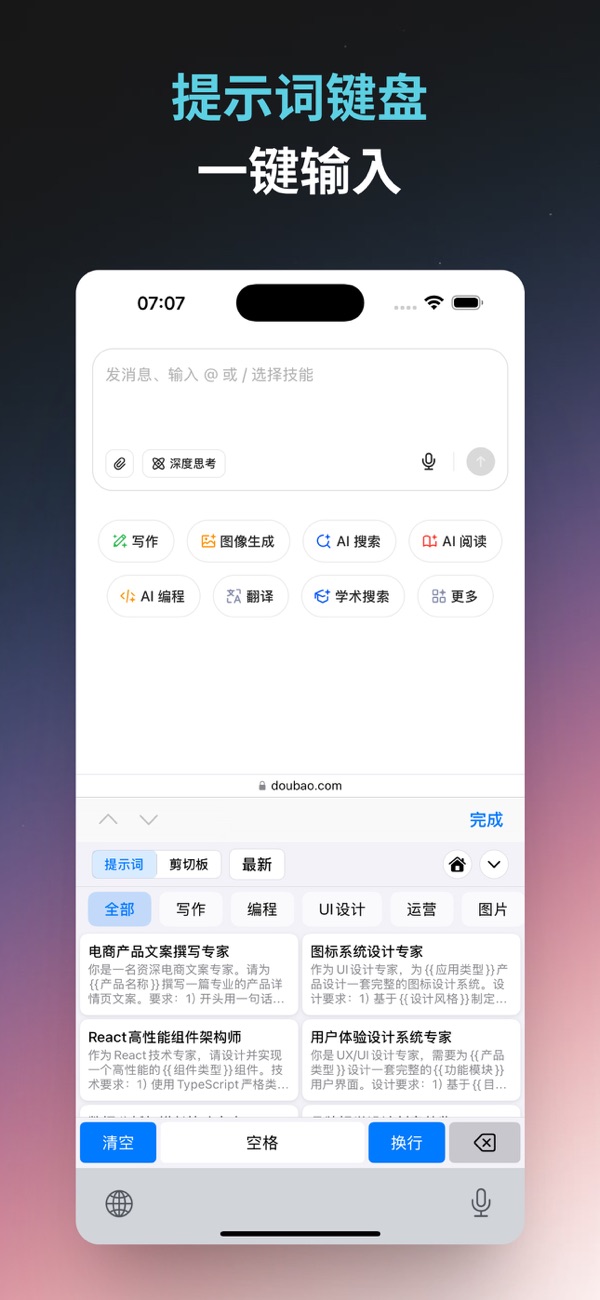 办公效率:支持剪切板、输入法快捷输入 AI提示词,让工作更高效。