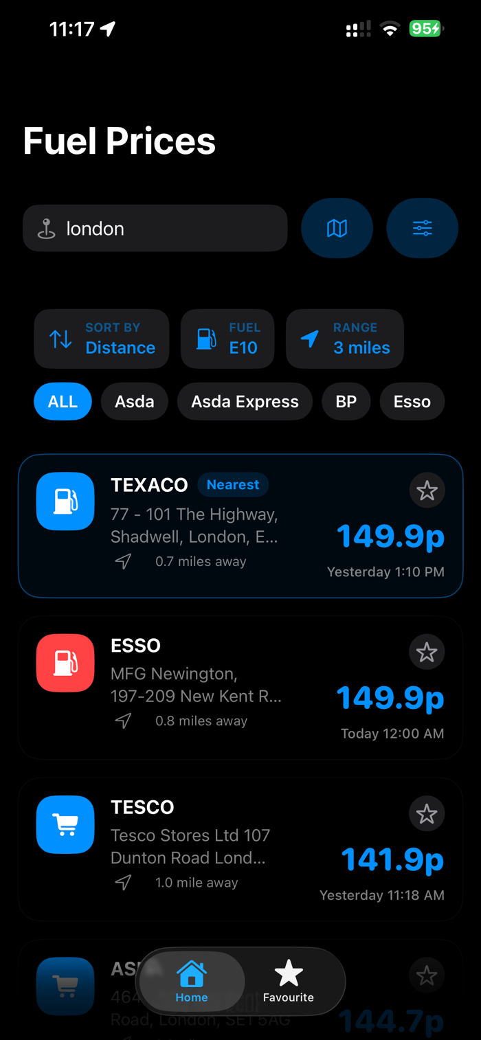 Fuel Radar是英国司机必备工具,适用于iPhone和Apple Watch。能实时对比汽油(E10/E5)和柴油(B7)价格,数据直接来自燃料公司,确保准确性。具备实时价格对比、双视图模式、一键导航、司机友好设计,还有全新Apple Watch应用,可一眼查看当地最便宜价格,轻松实现燃油节省。