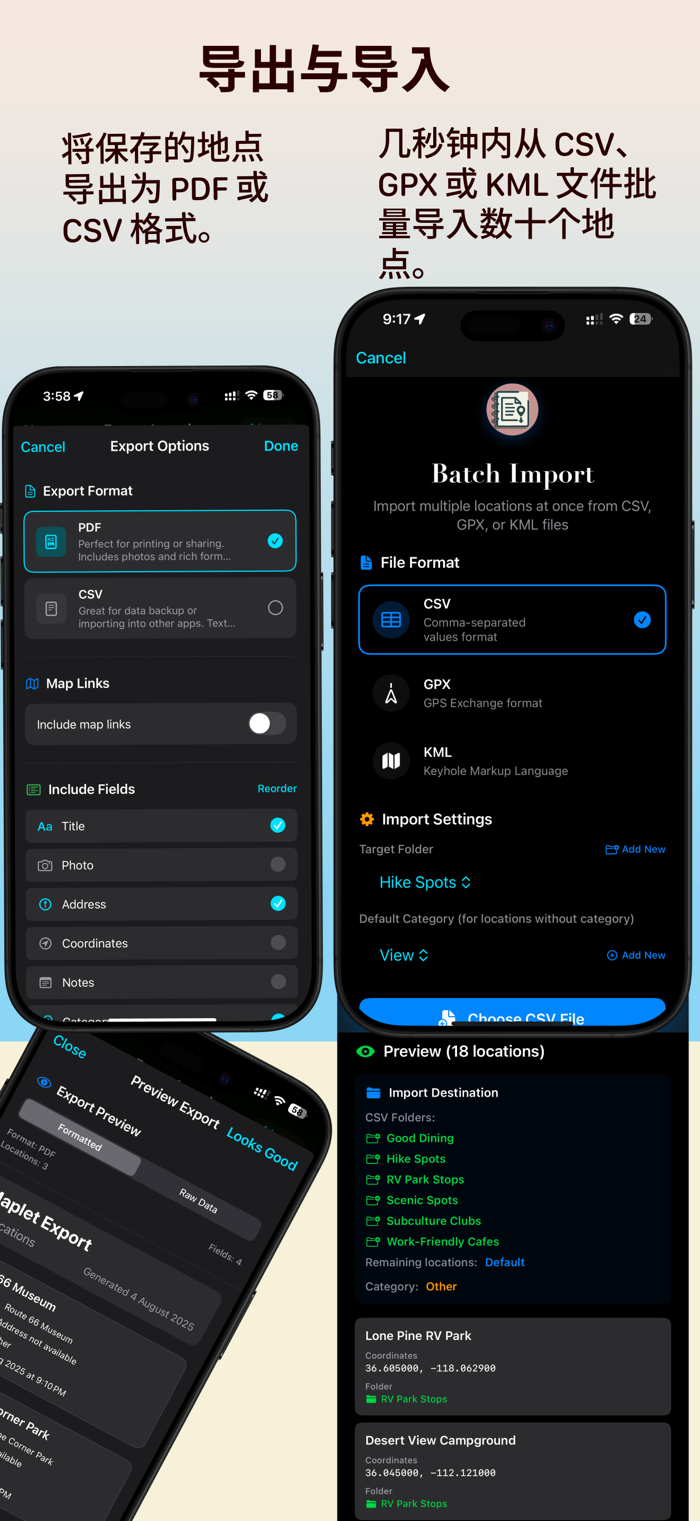 [强大的 GPX 导入与导出] • 格式全兼容:完美支持导入来自...