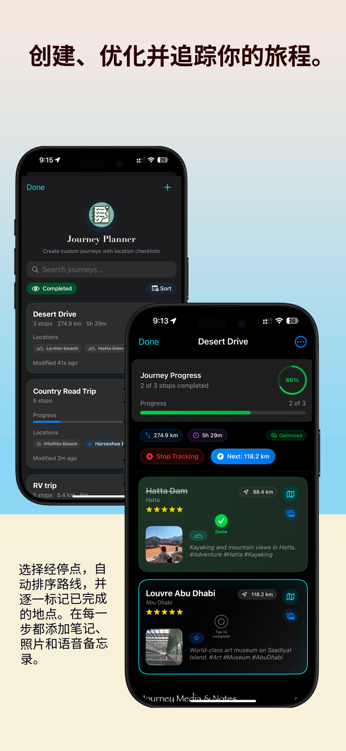 • 实时轨迹追踪:跟踪自驾游或徒步进度,逐一勾选已到达的打卡点。