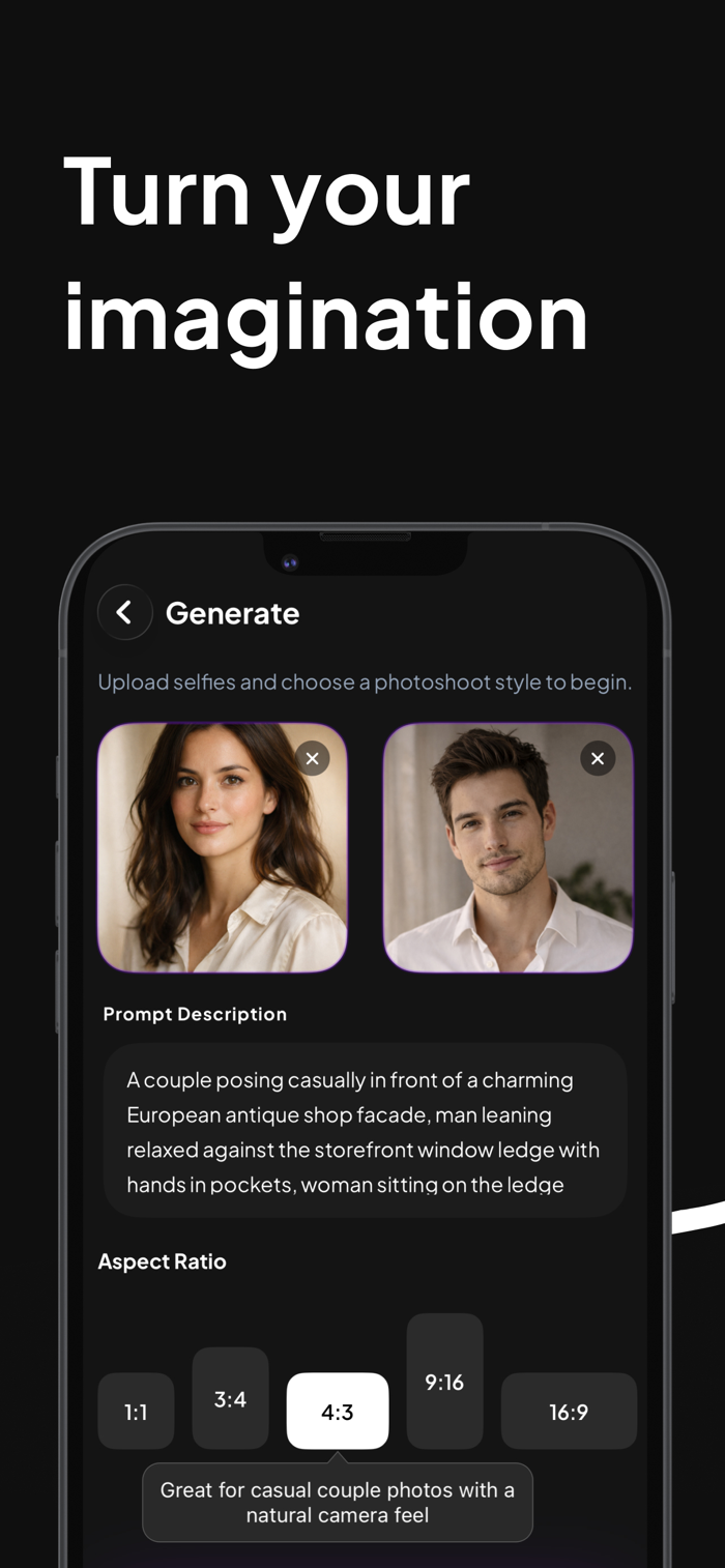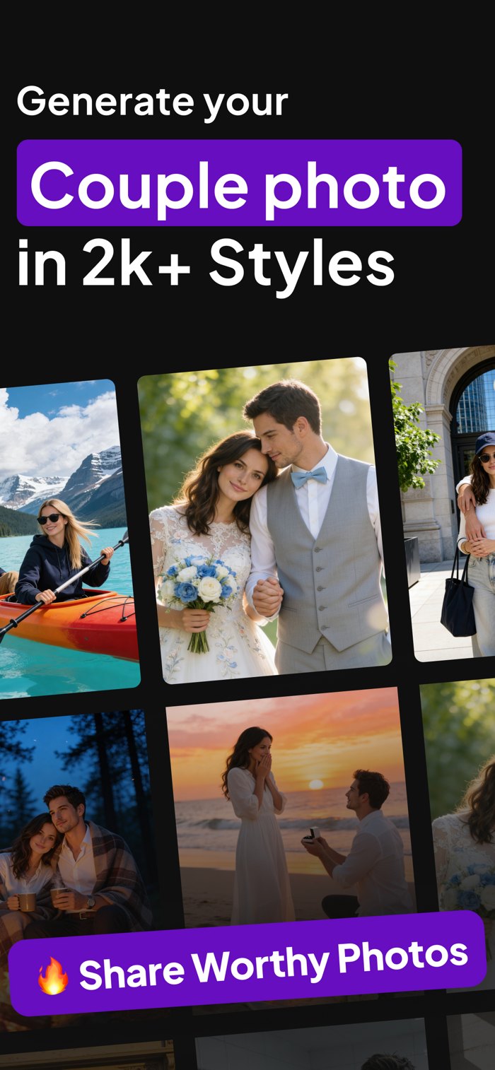 Just upload, generate, and save your favorite couple photos in a few taps.