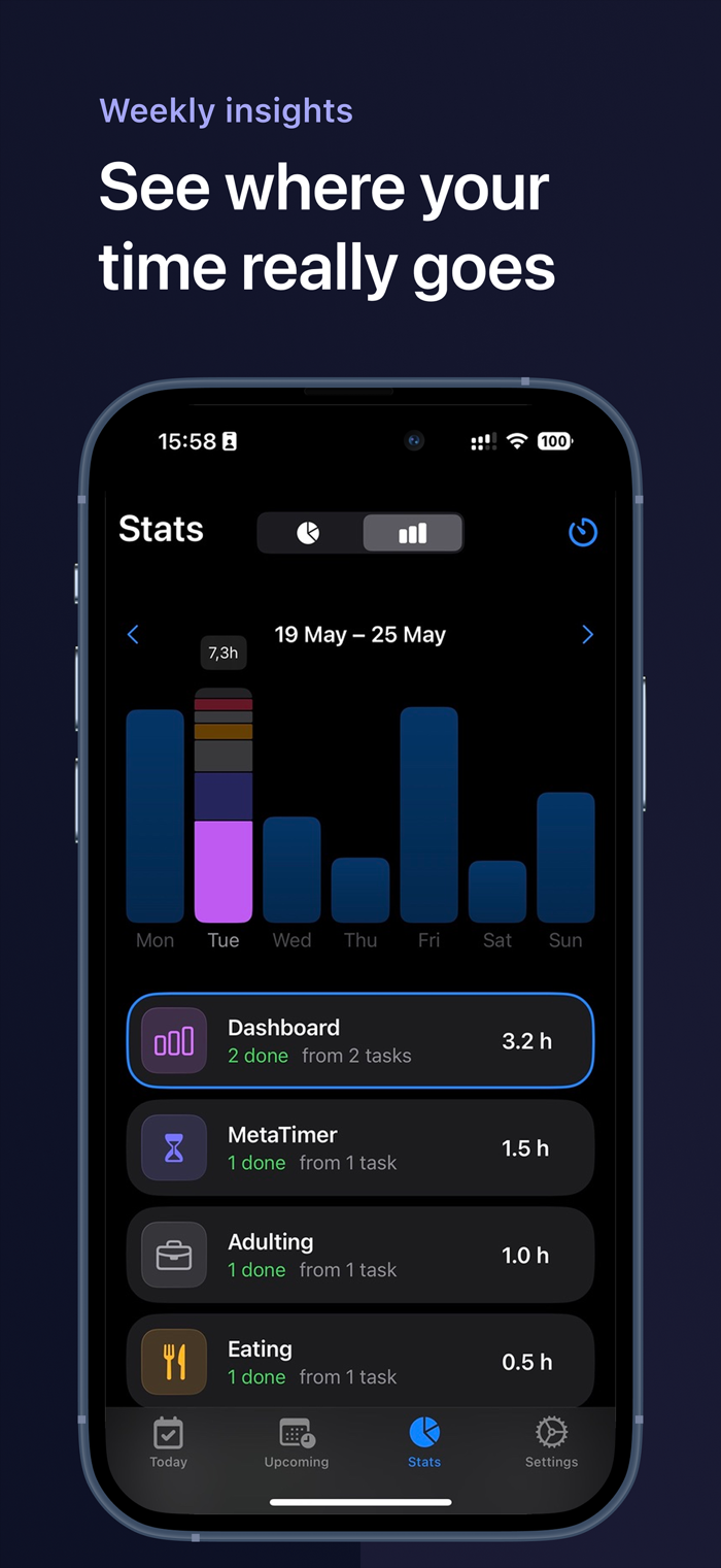 It’s more than a standard timer app — it’s an ADHD planner, a productivity timer, and a daily planner app all in one. By blending time tracking, focus sessions, and flow-based planning, it adapts to how your brain works instead of forcing you into a rigid mold. People with ADHD often struggle with task initiation or keeping attention on a single activity, and MetaTimer provides just enough structure to keep you on track without overwhelming you.
