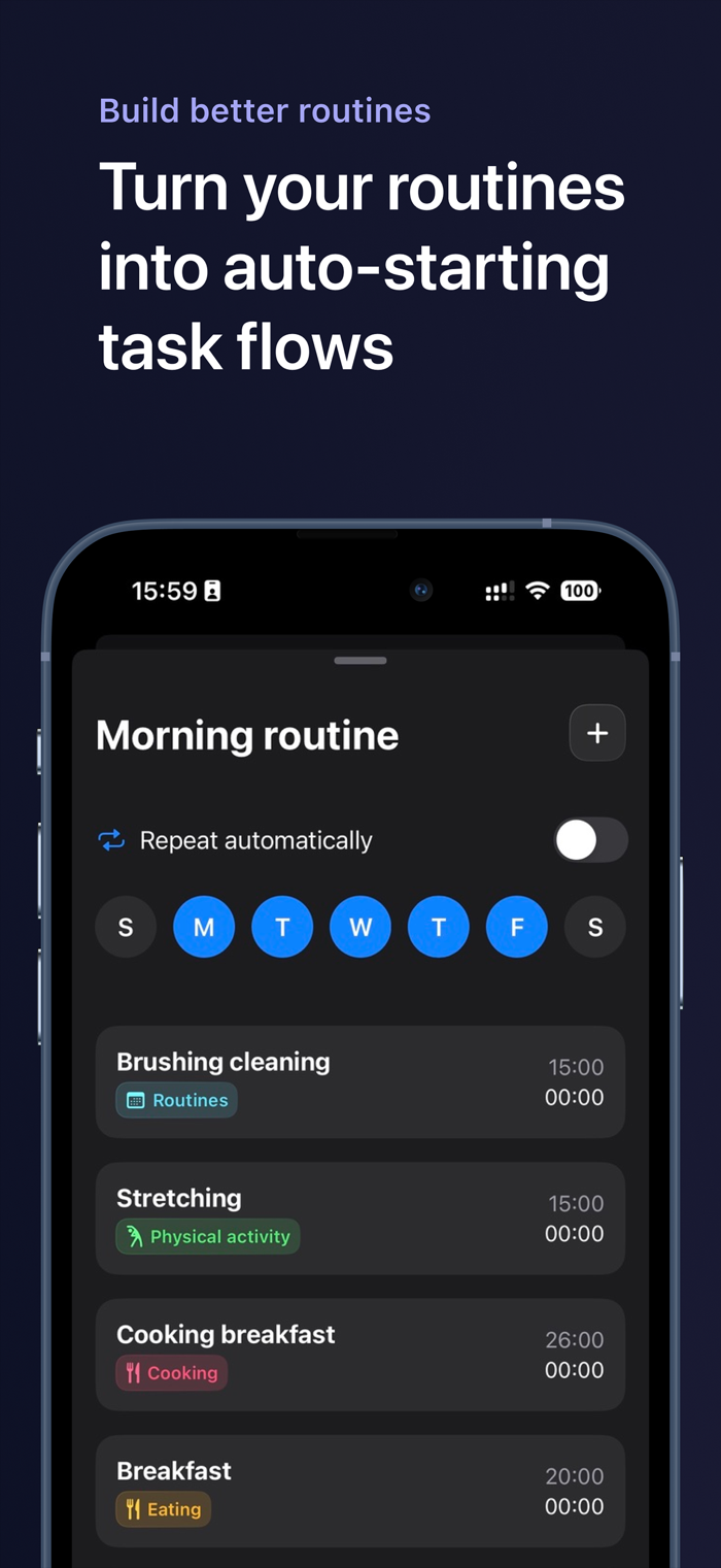 • Reduce decision fatigue with daily routines and a task-at-a-time flow