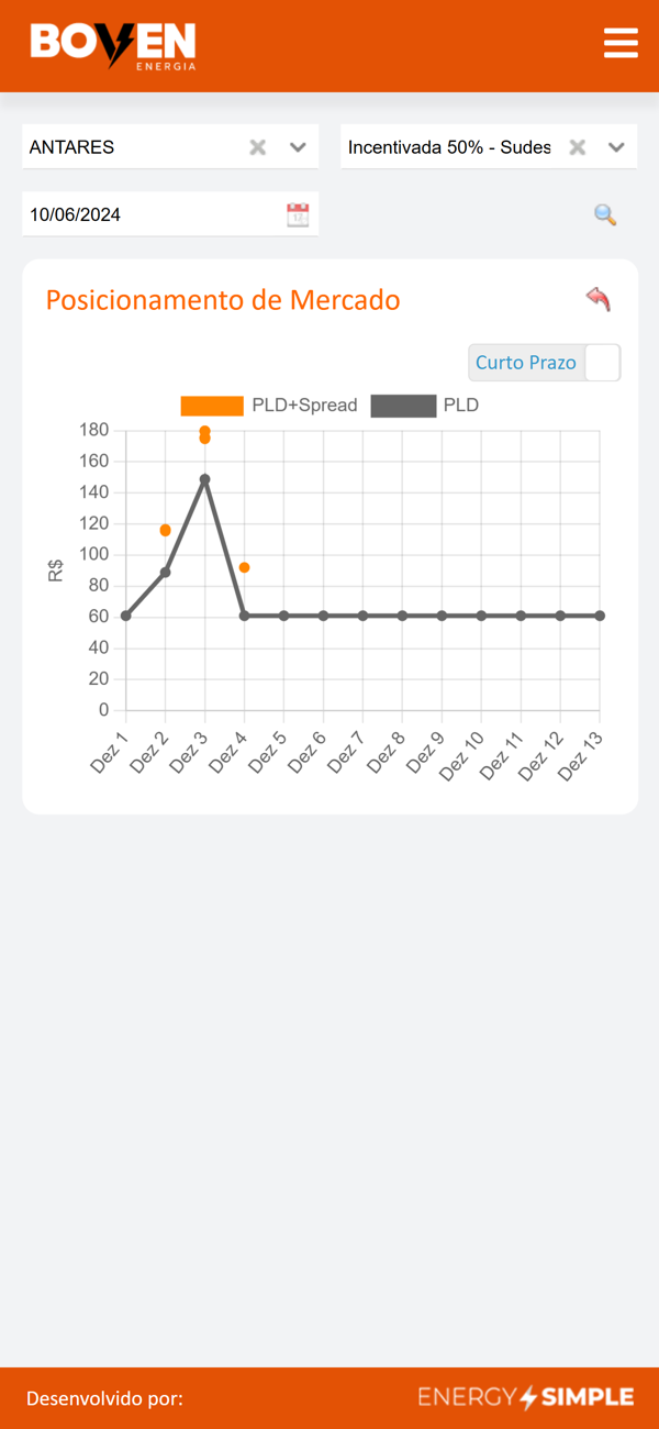 Aplicativo disponível para os clientes de gestão da Boven Energia. Através do mesmo os clientes poderão acompanhar o desempenho de sua empresa no Mercado Livre de Energia. Nele é possível acompanhar, através de gráficos, a situação contratual, posicionamento de mercado, consumo real e previsto, ganho na adesão ao Mercado Livre de Energia, e várias outras informações produtivas.
