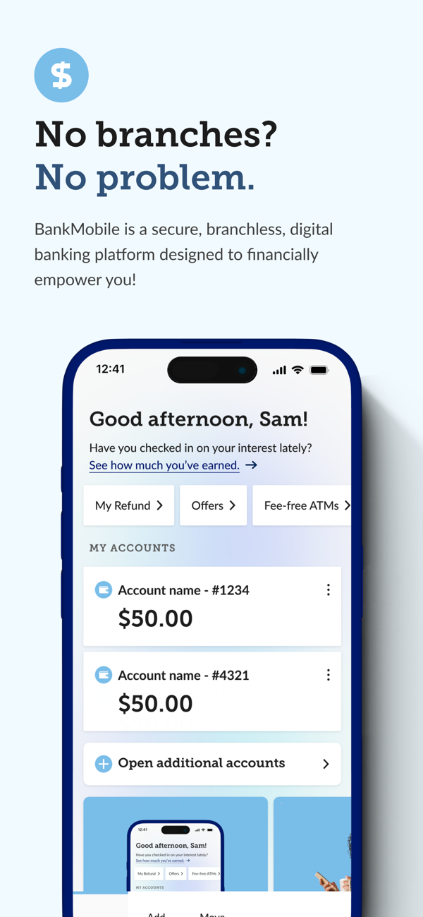 Smart, digital banking on the move with the BankMobile app.