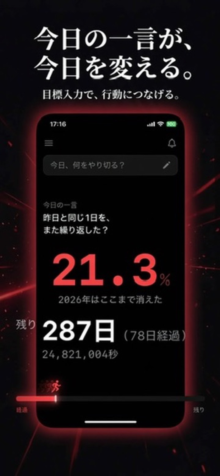 这是一款能实时确认今年已过率、剩余天数和剩余秒数的时间管理应用。夜晚打开,会大幅显示今年已过百分比。主要功能包括:以秒为单位实时显示今年已过率;倒计时剩余天数和秒数;有365条日更消息;能在喜欢的时刻接收通知;支持主屏幕widget;无买断、广告和订阅。助你珍惜时间,让今日更有意义。