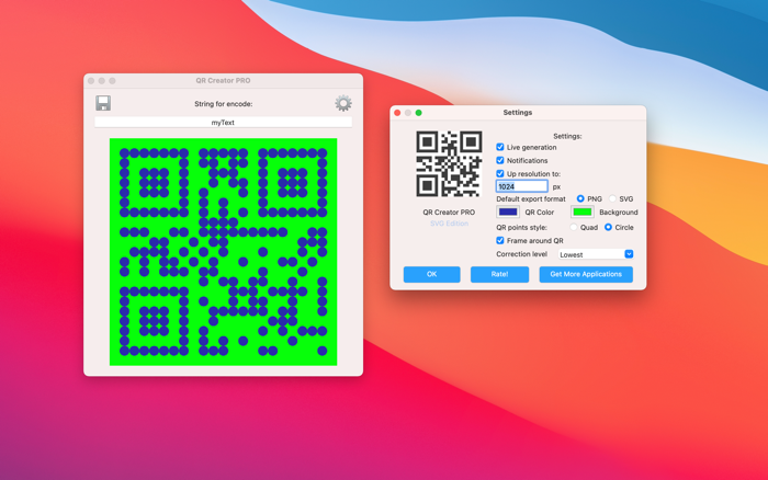 QR Creator Pro是创建QR码的高效方案,能实时创建QR码,可保存为图像文件,支持分辨率与颜色设置,还能导出到SVG。