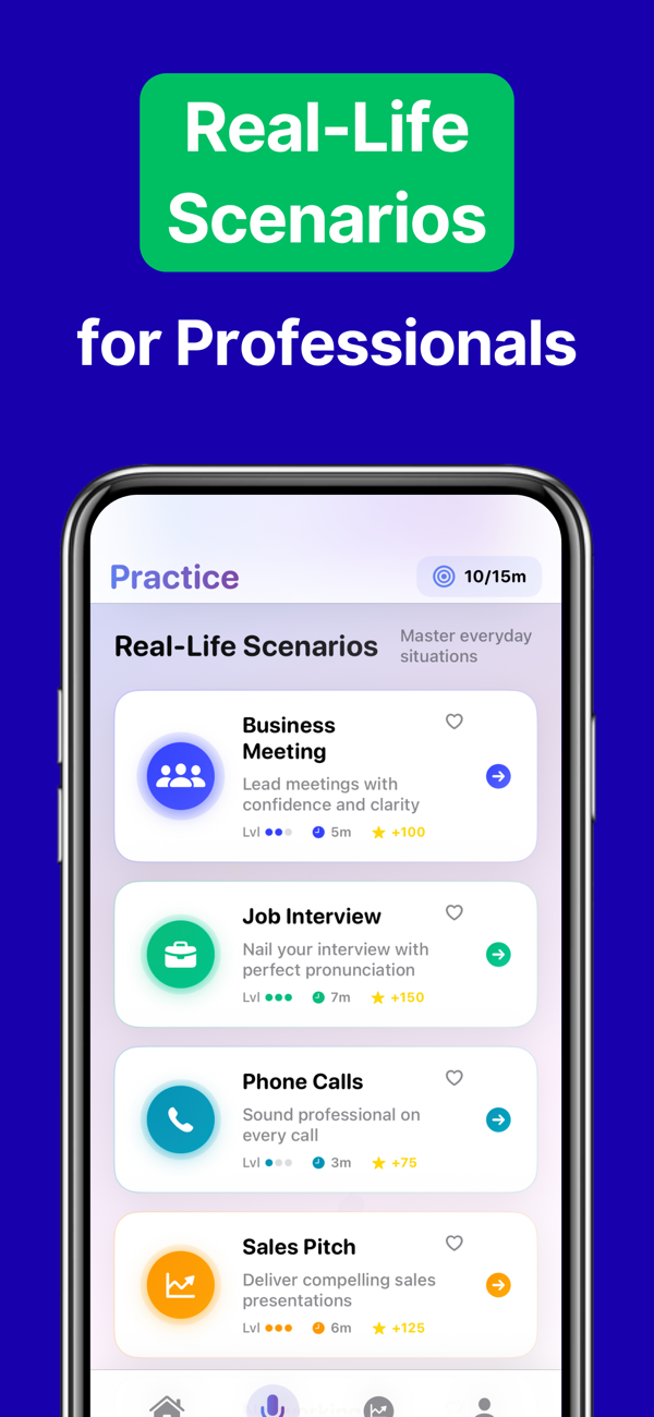• Fun & Motivating: Earn feedback and badges as you improve. Engage in interactive exercises, from tongue-twisters to mock interviews. Track your progress on your personal dashboard – see your pronunciation score and fluency improve week by week.