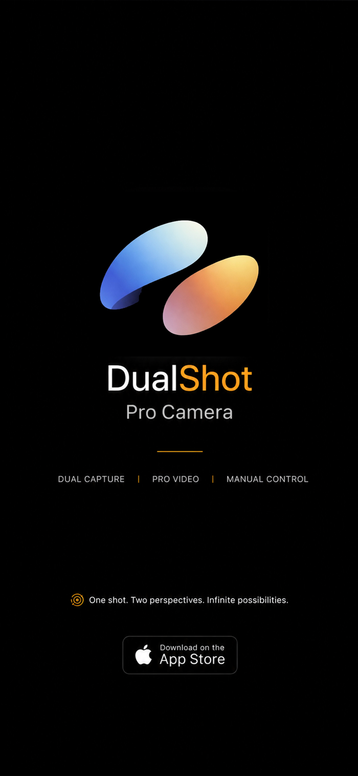 DualShot Pro Camera lets you record vertical and landscape video at the same time, from a single take. One tap captures both — ready for Reels, TikTok, and YouTube cinematic edits without ever shooting twice.