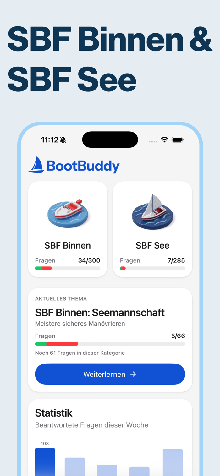 Endlich frei auf dem Wasser sein! Mit Freunden, spontan, auf dem Meer oder den schönsten Seen Europas. Der Bootsführerschein ist dein Ticket dahin. BootBuddy bringt dich mit allen amtlichen Prüfungsfragen für SBF See und SBF Binnen sicher ans Ziel – flexibel, effizient und auf dich zugeschnitten.