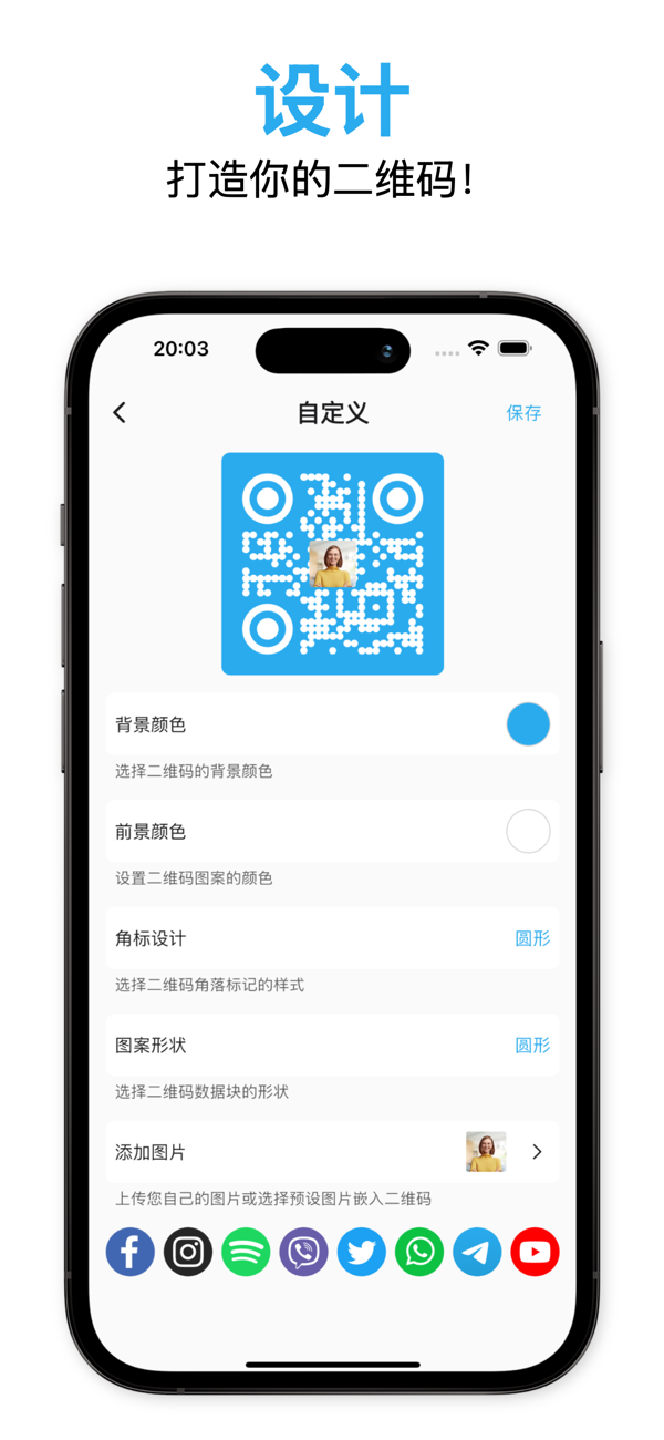 • 生成自定义二维码:为网站、联系人、WiFi、社交媒体等创建二维码。您可以使用颜色、形状甚至您自己的徽标进行自定义!