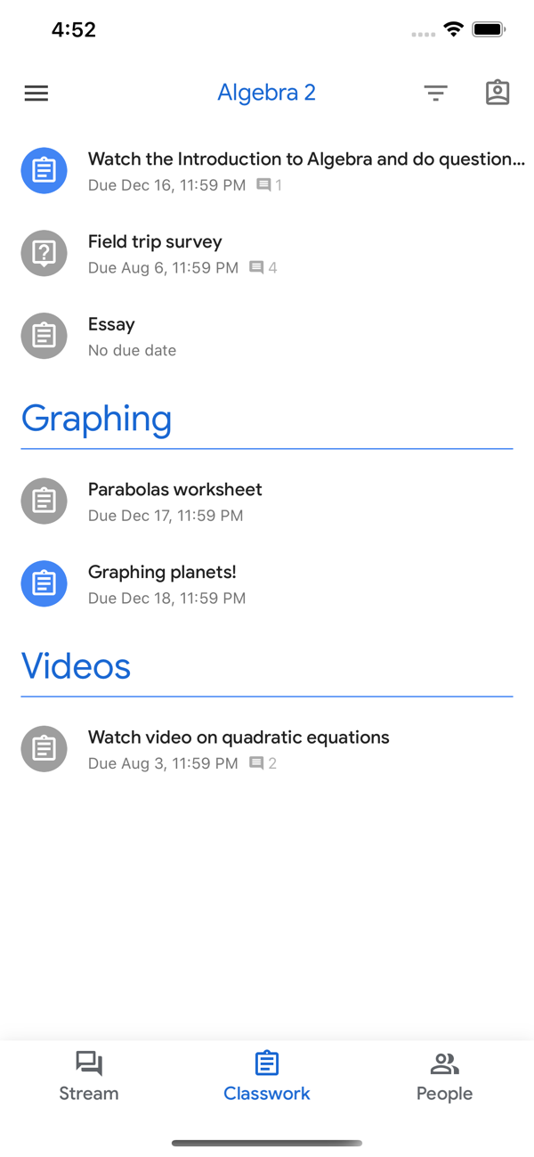 Students can keep track of what’s due on the Assignments page and begin working with just a click. Teachers can quickly see who has or hasn't completed the work, and provide direct, real-time feedback and grades right in Classroom.