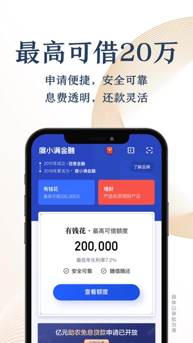 度小满利用人工智能和大数据风控技术,为用户提供方便、快捷、安心的借款服务。
