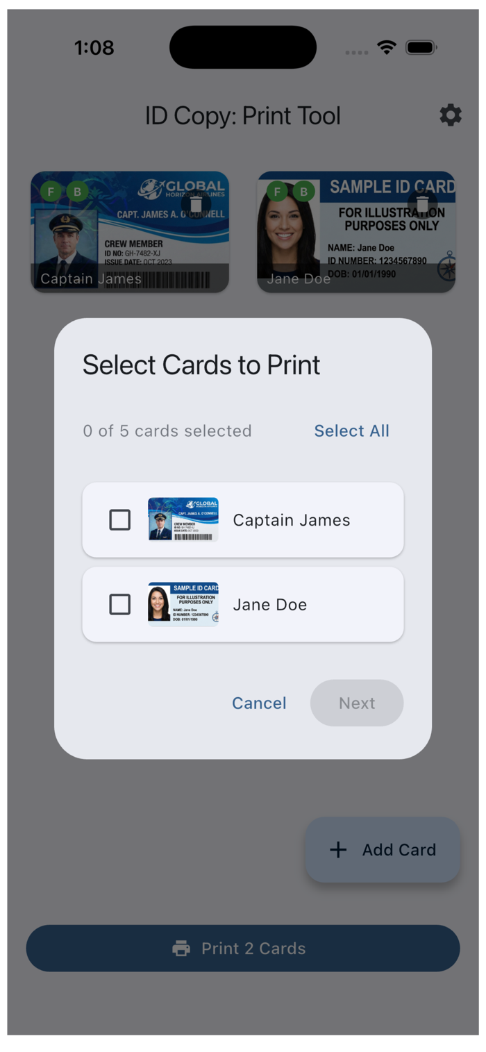 Card Wallet: Save your family's IDs, Licenses, and Membership cards securely on your device.