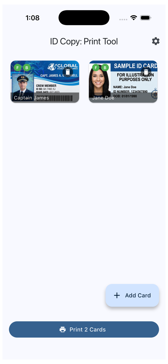 The #1 problem with printing IDs is the "Flip." When you put the paper back in to print the backside, it usually comes out misaligned. Copy ID uses smart mirroring logic to mathematically reverse the back-page layout, ensuring perfect front-to-back registration every time.