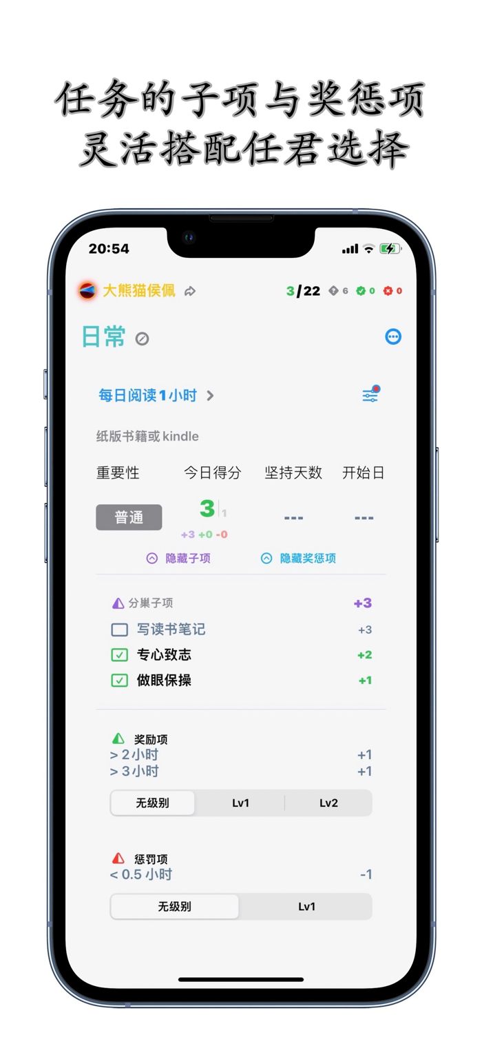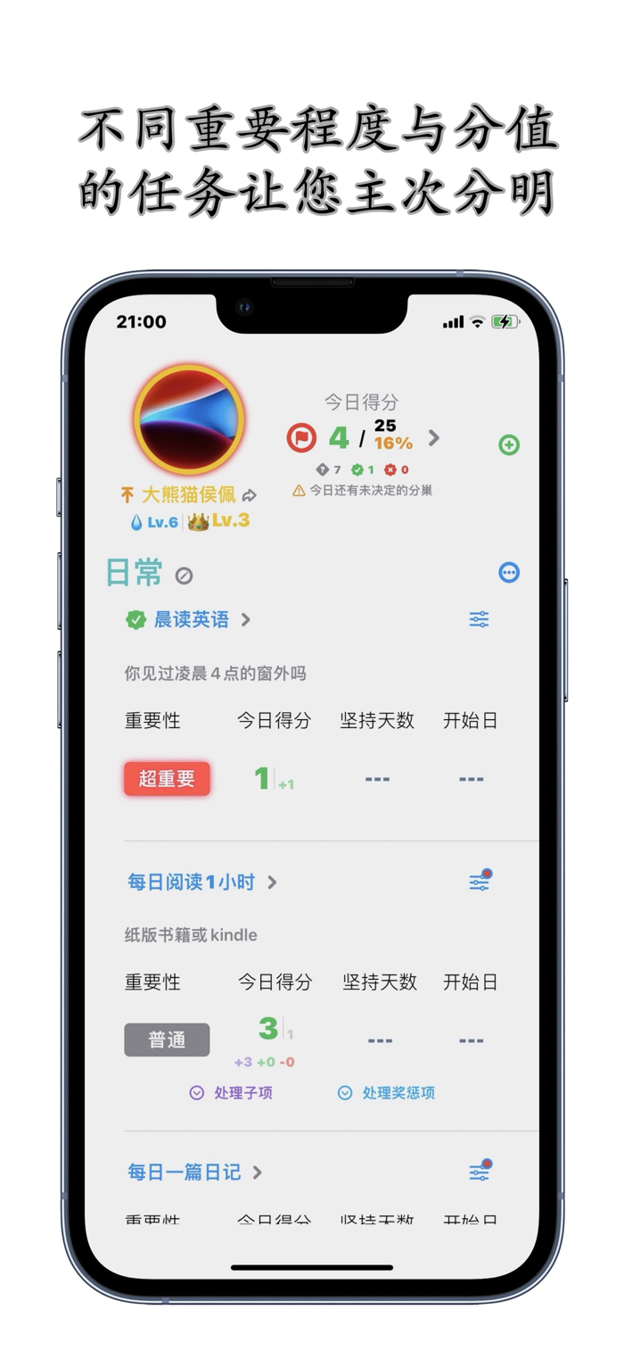 - 每天都可以设置不同时限、不同难度、不同分值的任务;