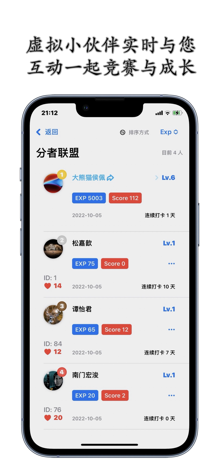 - App中有无数虚拟伙伴陪您一起竞赛、互动、互勉、共同进步;