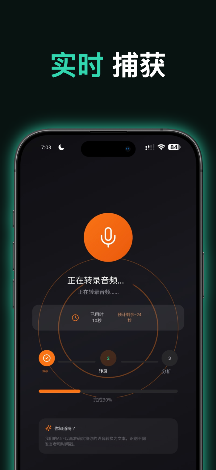 录制与转录 通过实时音频波形显示捕捉清晰的录音。Deepgram Nova-3的AI驱动转录提供准确的语音转文字,并自动识别发言人——让您始终知道谁说了什么。支持12种语言,包括英语、西班牙语、法语、德语、中文、日语、韩语等。
