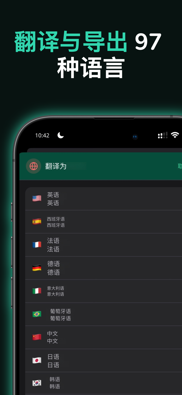 翻译 录制后将整个转录、摘要和行动项目翻译成12种支持的语言中的任何一种。非常适合多语言团队。