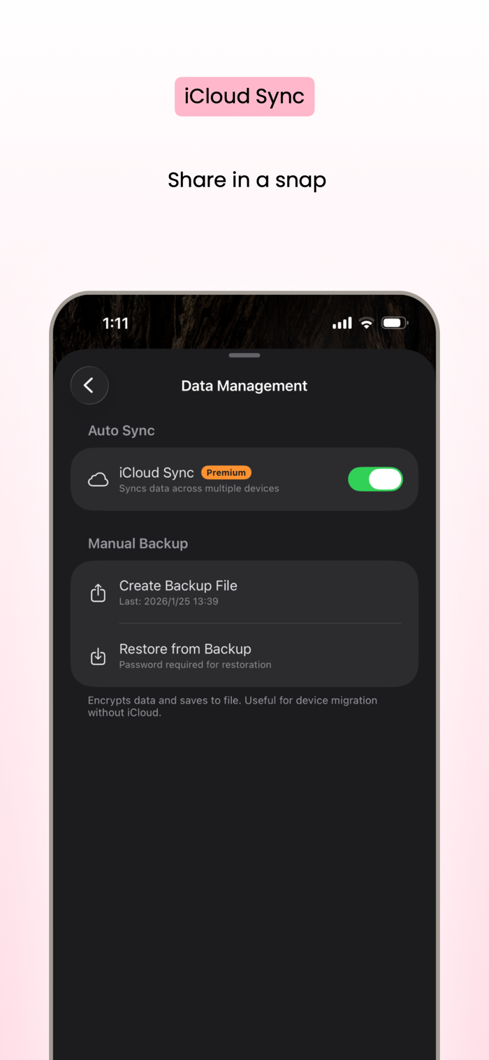 在 iPhone 上写的日记,用 iPad 回顾。即使更换机型,数据也能完整保留。支持 iCloud 多设备同步,更安全地守护珍贵回忆。