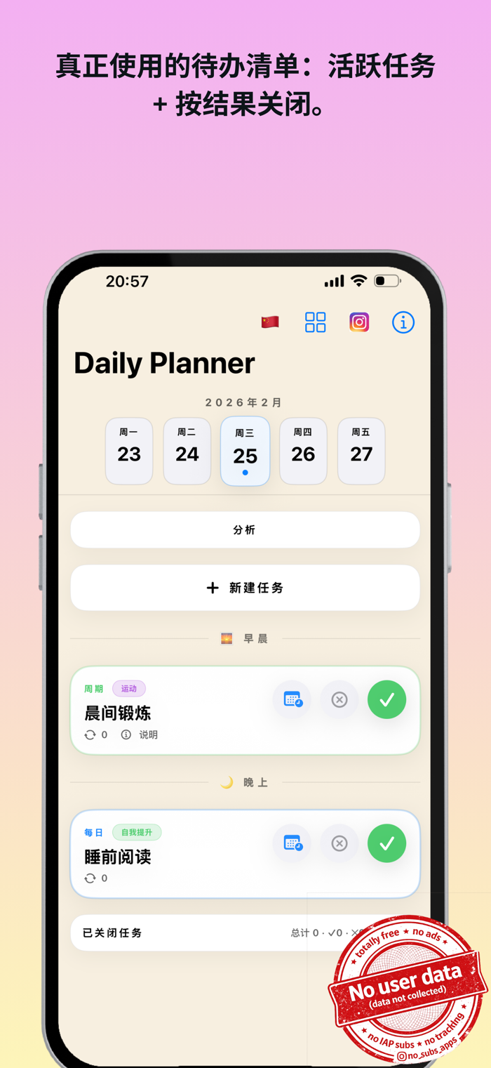 Daily Planner — 透明的离线任务计划和习惯追踪器。