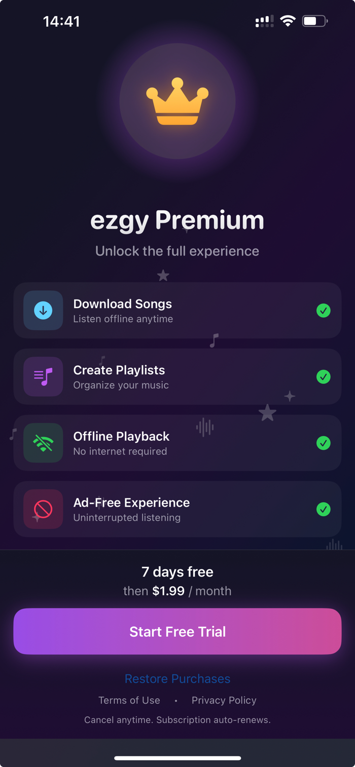 ezgy is a lightweight music player that streams your personal collection directly from iCloud, Google Drive, Yandex Disk — fast, private, and completely yours.