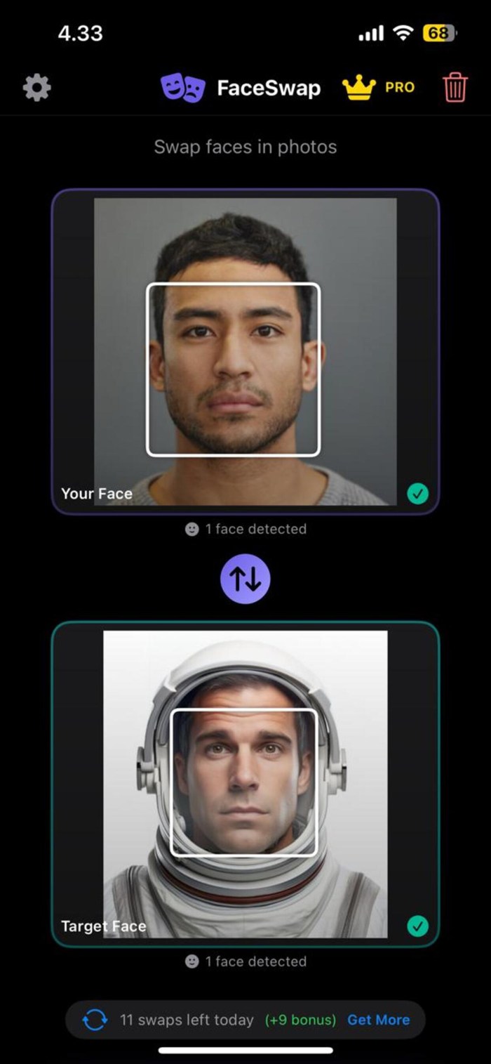 免费用户每天可获得一定次数的换脸,并可通过广告获得额外次数。Premium 可去除广告并解锁无限次换脸。