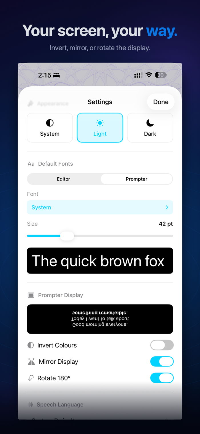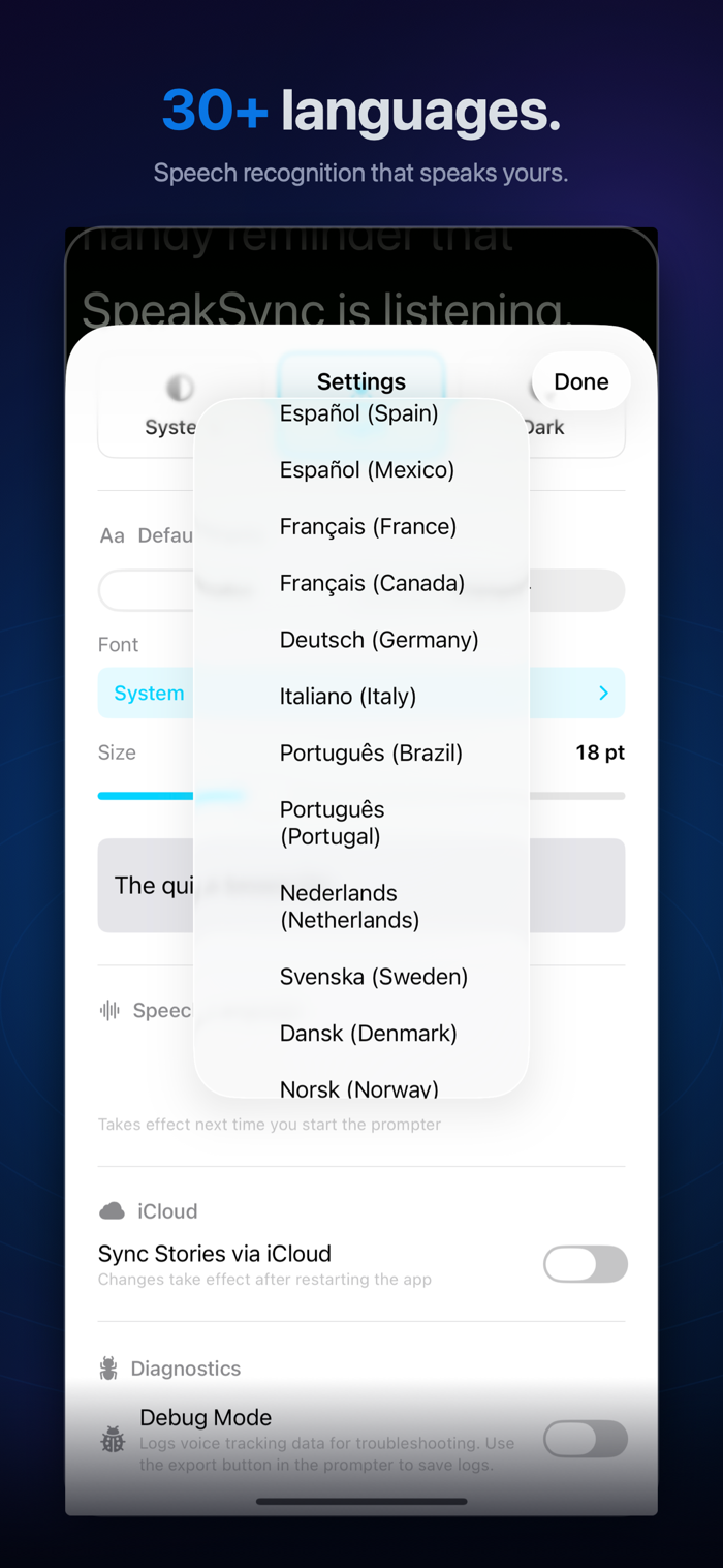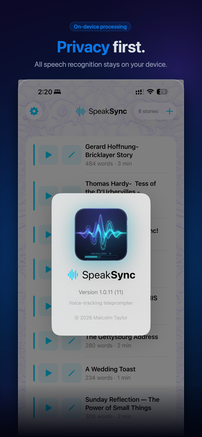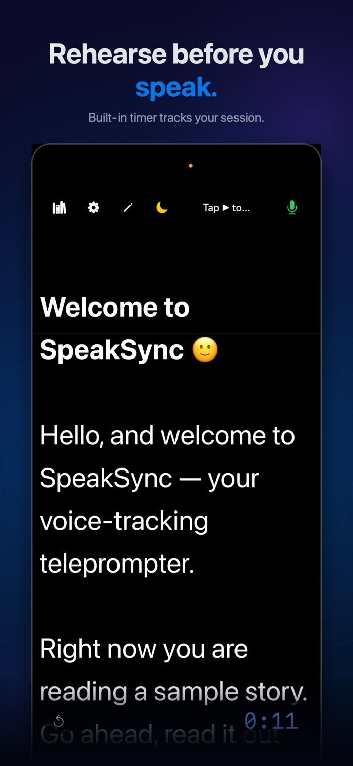 Download SpeakSync and turn your iPhone or iPad into a teleprompter that truly listens.