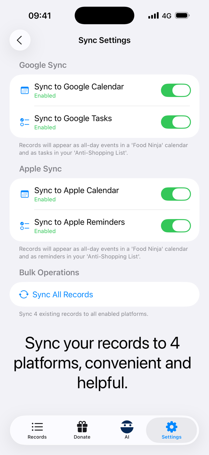 Sync with Google Tasks and Apple Reminders so you don’t accidentally buy what you already have.