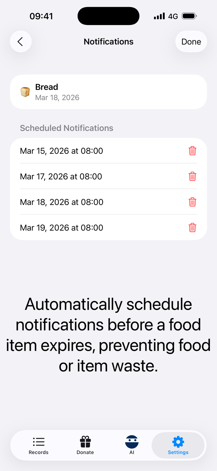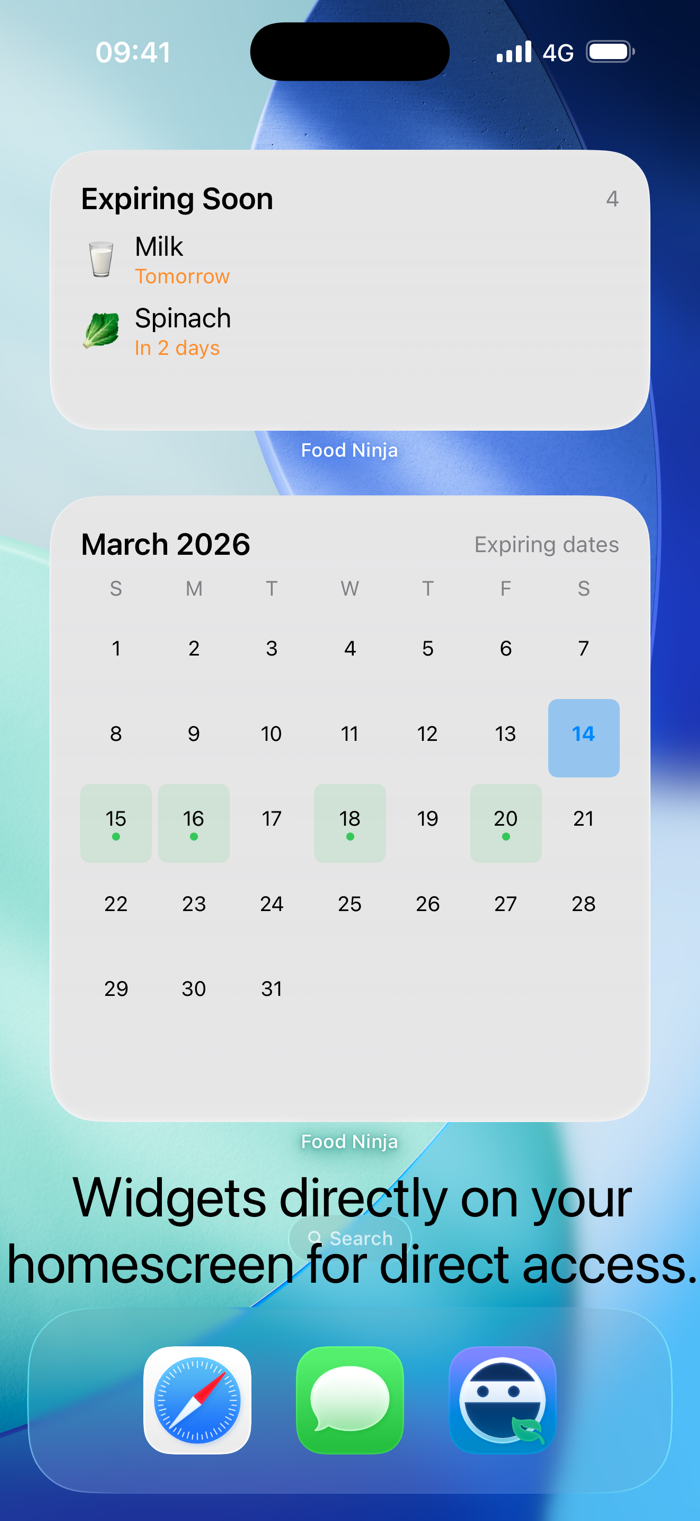 Get notified before items expire and see upcoming expirations directly from your home screen widgets.