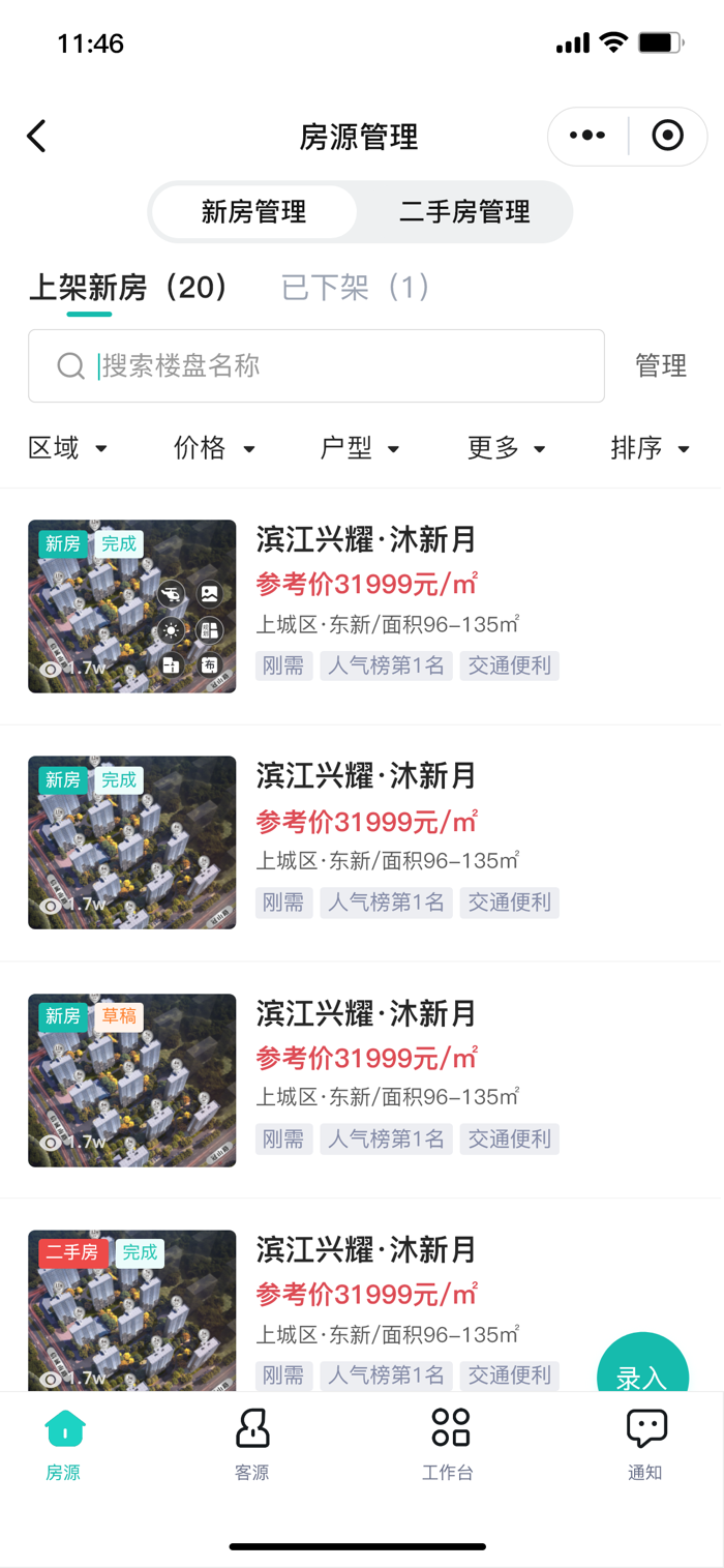 一站式房产管理APP,具备高效便捷的房源与客源管理功能,能实时触达通知,其工作台整合核心功能,可让房产业务处理更省心高效。