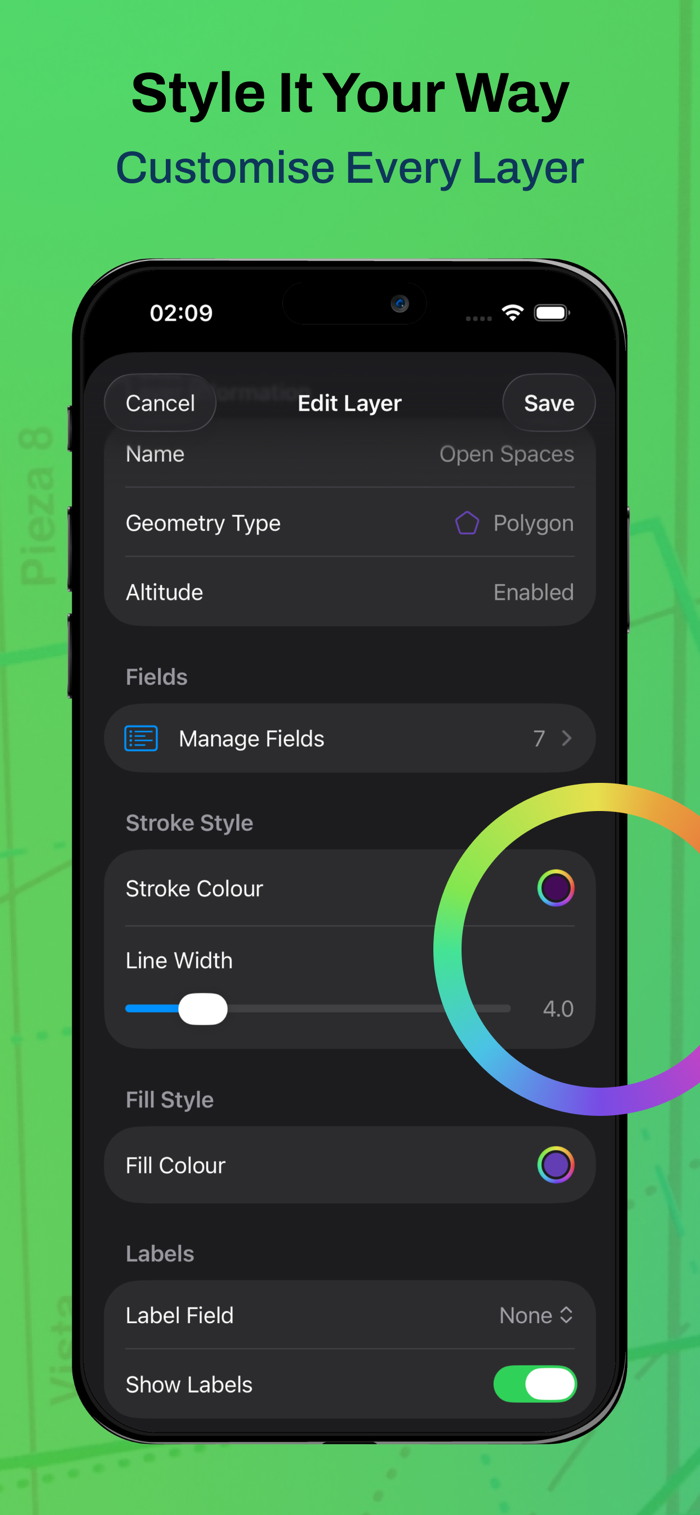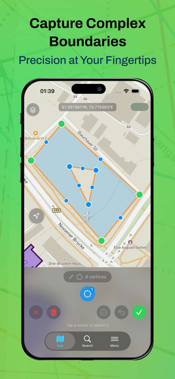 使用GPS或手动放置在地图上直接创建矢量要素。支持复杂的多部分几何图形。免费层包括1个项目、3个图层,每个图层20个要素。