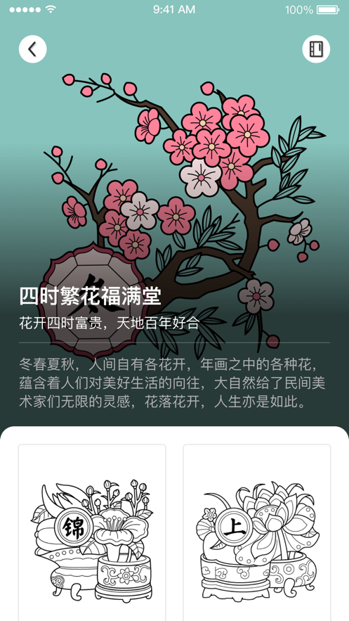「锦色」是一款国风绘本填色应用,源于对中国传统文化的热爱。首个版本提供民间年画题材,如门神、女神等,可存画廊分享拜年。操作简单,新手用“版画工具”能快速出民间木版年画质感作品,资深画手也能精细调节创作独特作品。后续还会更新敦煌乐舞飞天、青铜器兽面鸟纹等多种题材,让用户在数码世界感受传统文化之美。