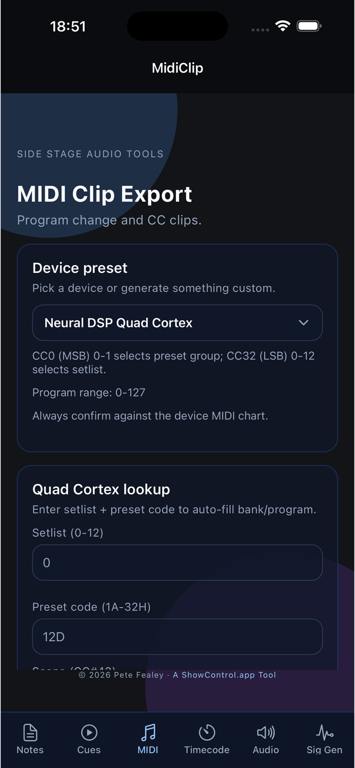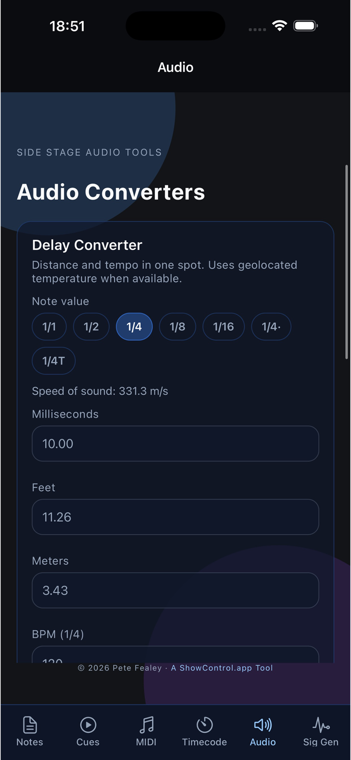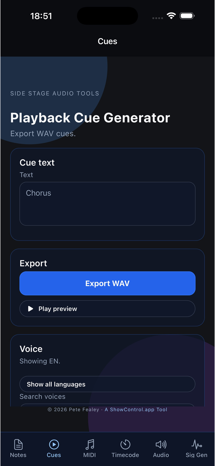 Side Stage Audio Tools is a utility app for playback engineers and show operators.